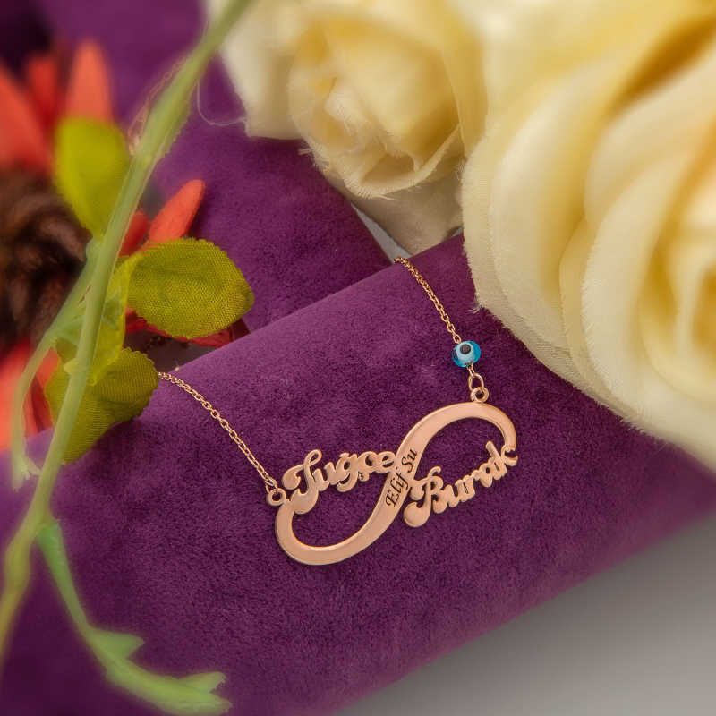 Sevgilinize sonsuz aşkı ifade etmenin en güzel, en anlamlı yollarından biri de ona sonsuzluk temalı gümüş takılar hediye etmektir. Sevgilinize hediye edeceğiniz bu özel kolye ile ona olan sonsuz aşkınızı sevginizi ifade edebilir sonsuza kadar birlikte olacağınız mesajı verebilirsiniz. Sonsuz aşk bayan kolye modeli 925 ayar gümüşten imal edilmiştir. Gümüş üzerine rose altın kaplama yapılmıştır. Rose altın kaplama yapılan gümüş bayan kolyeler parlaklığını uzun süre muhafaza eder ve oksitlenmesi gecikir. Gümüş olan zincirin boyu ortalama 45 cm’dir. Tüm gümüş bayan kolye modellerinde olduğu gibi gümüş isimli sonsuzluk bayan kolye modeli de el emeği ile üretilmiştir. Gümüş ve değerli taşlar nedeniyle belirtilen ortalama ürün ağırlığında ± %10 sapma olabilmektedir.
