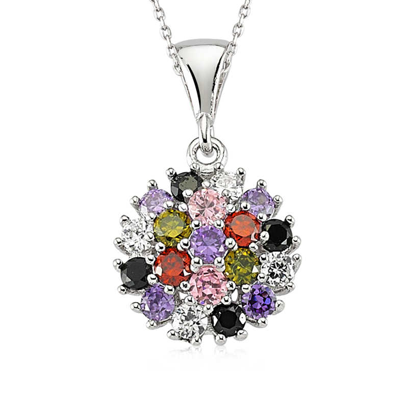 Gümüş ve renkli zirkon taşların ışıltısı dünyanıza renk katacak. Zirkonun göz alıcı parıltısı geometrik şekli ve renkleri ile doğanın ritmine ayak uyduruyor. Severek kullanacağınız gümüş kolye, yaşam enerjinizi artıracak. 925 ayar gümüşten imal edilmiştir. Gümüş üzerine rodyum kaplama yapılmıştır. Rodyum kaplama yapılan gümüş bayan kolyeler parlaklığını uzun süre muhafaza eder, oksitlenmesi gecikir. Üzerinde bulunan taşlar zirkondur. Zincir boyu ortalama 45 cm’dir. Gümüş kolye modellerinin tamamında olduğu gibi gümüş renkli taşlı bayan kolye modeli de tamamen el emeği ile üretilmiştir. Gümüş ve değerli taşlar nedeniyle belirtilen ortalama ürün ağırlığında ± %10 sapma olabilmektedir.